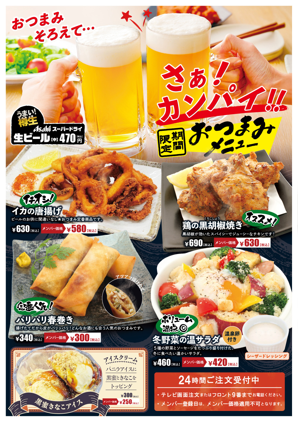 【期間限定】冬でもやっぱり\生ビール!!/ 寒い日にぴったりな暖かいおつまみを添えて