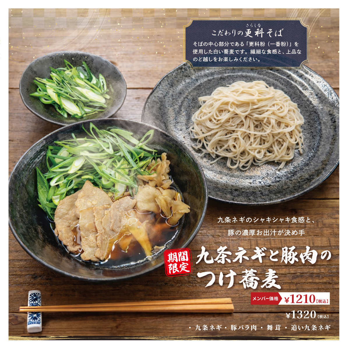 【期間限定】九条ネギと豚肉の濃厚な旨味が絡む絶品つけ蕎麦